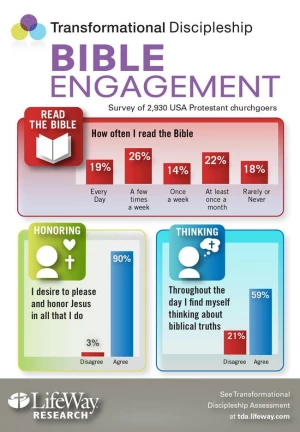 A 2012 study of U.S. Protestants conducted by Lifeway Research indicated that less than 50% of survey respondents engage in reading the Bible on a weekly basis or more. At the same time, 90% of those respondents said they wanted to honor Jesus in all they do. Call me crazy, but I can't help but wonder how people can really honor Christ in all they do if they don't know what he's said.